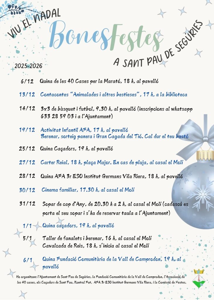 Agenda Agenda de Nadal 01/12/2025 - 31/12/2025 | Sant Pau de Segúries < Entrada AnteriorEntrada Posterior >