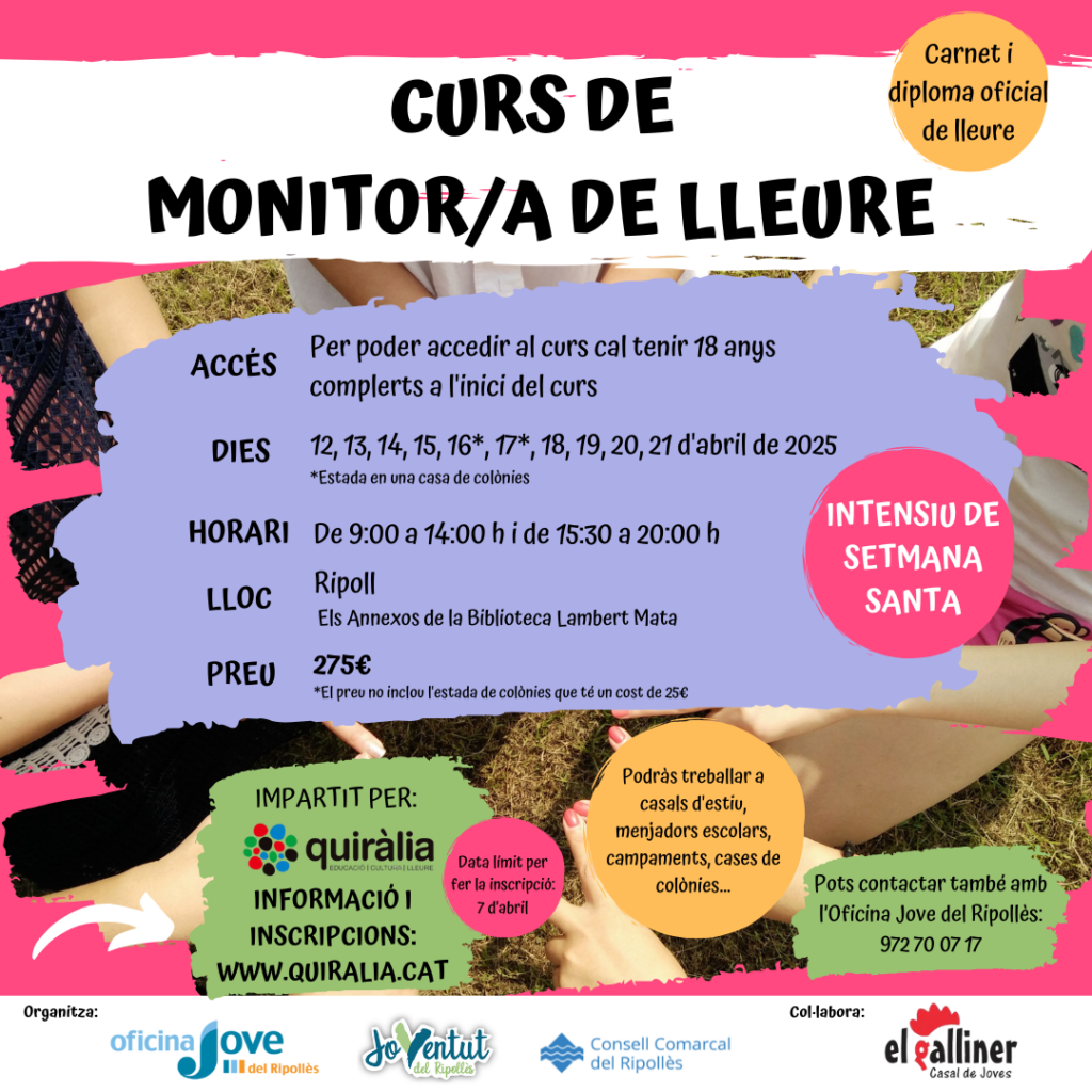 Agenda Curts de monitor/a de lleure 12/04/2025 - 21/04/2025 | Casa de Colònies < Entrada AnteriorEntrada Posterior >