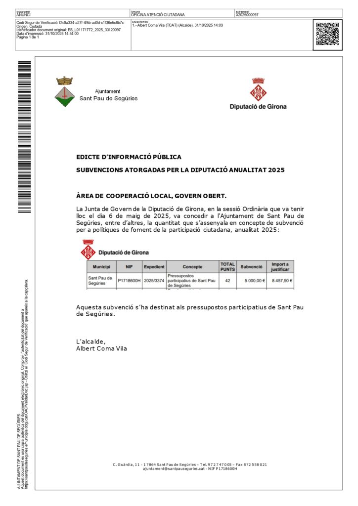 Notícies Edicte d’informació pública. Participació ciutadana 01/11/2025 - 30/11/2025 < Entrada AnteriorEntrada Posterior >