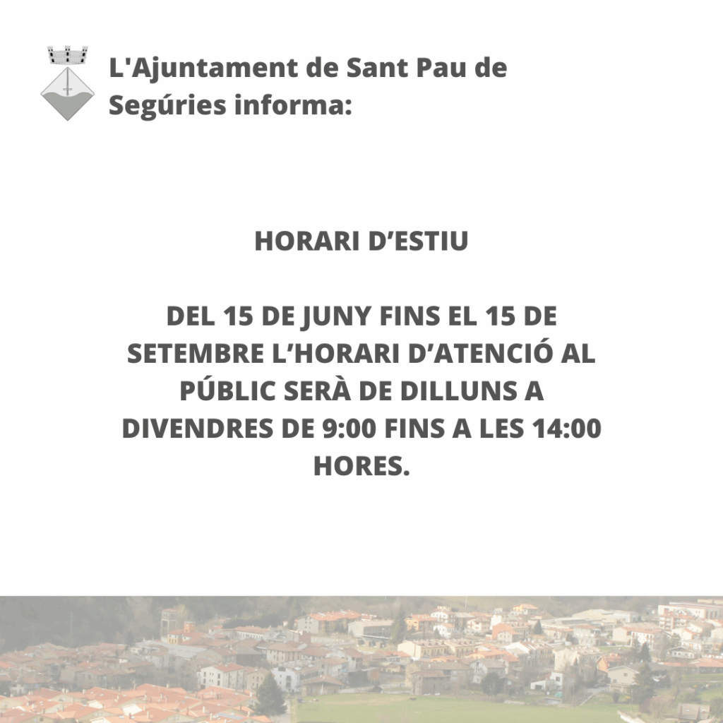 General Horari d’estiu atenció al públic 15/06/2025 - 15/09/2025 < Entrada AnteriorEntrada Posterior >