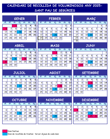 Calendari del ciutadà Calendari del contribuent Calendari voluminosos i deixalleria mòbil Calendari consultori municipal Calendari serveis socials
