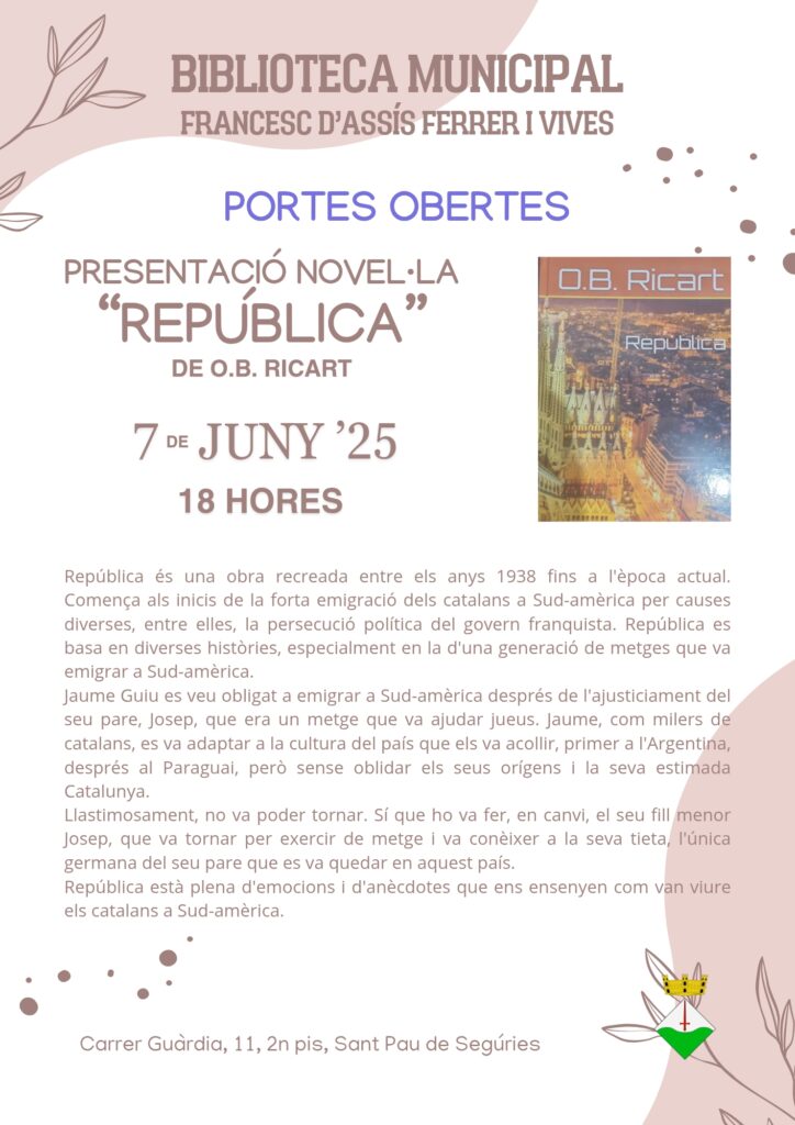 Agenda Presentació de la novel·la “República” 07/06/2025 - 07/06/2025 | Biblioteca Municipal < Entrada AnteriorEntrada Posterior >