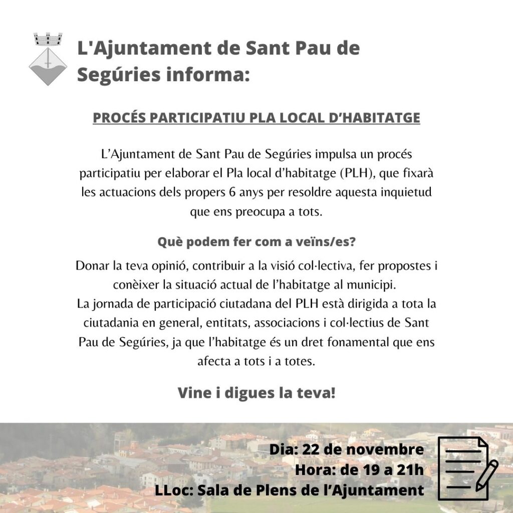 • Procés participatiu Pla Local d’Habitatge