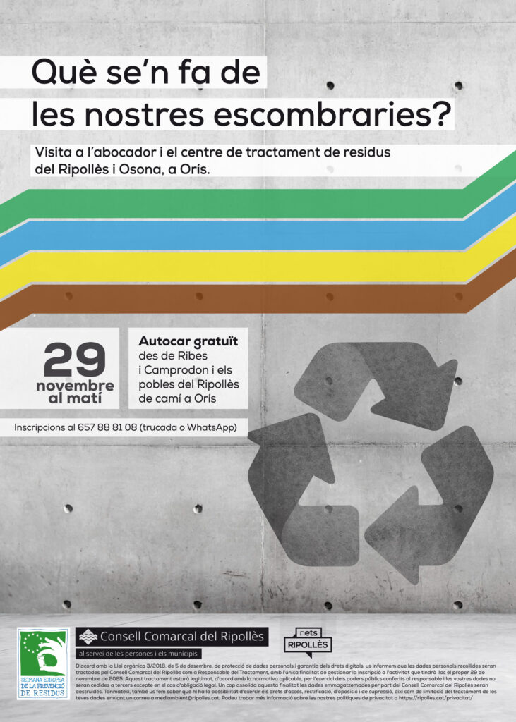 Agenda Que se’n fa de les nostres escombreries? 29/11/2025 - 29/11/2025 | Centre de tractament de residus as Orís < Entrada AnteriorEntrada Posterior >